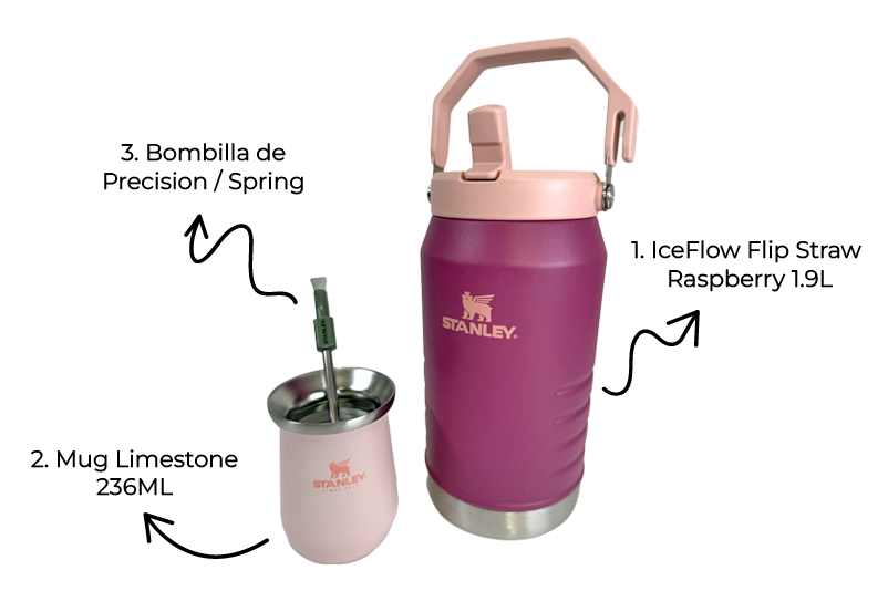 Combo Stanley para amantes del mate y de las aventuras en campo | IceFlow Flip Straw Jug 1.4L + Bombilla de precisión para Mate + Mate Mug 236ml